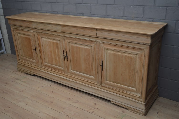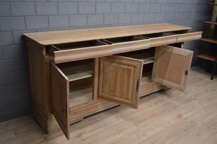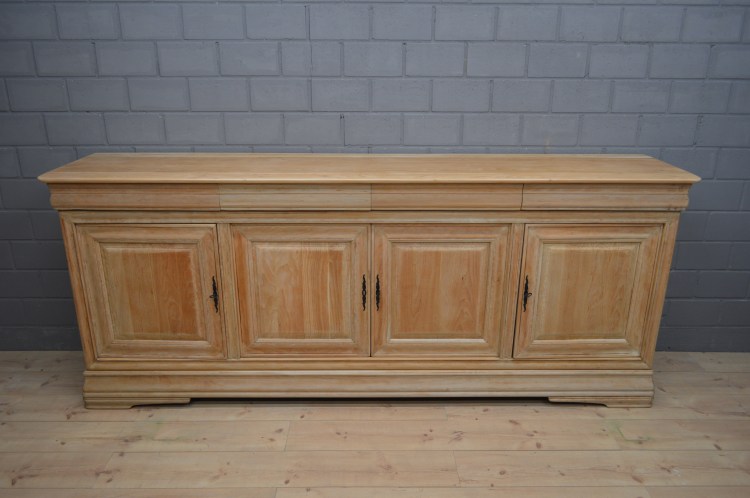 Buffet en bois naturel restauré avec 4 portes et 4 tiroirs