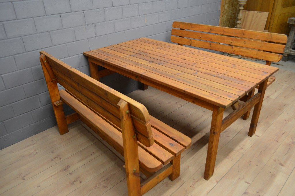 Ensemble table et bancs extérieur