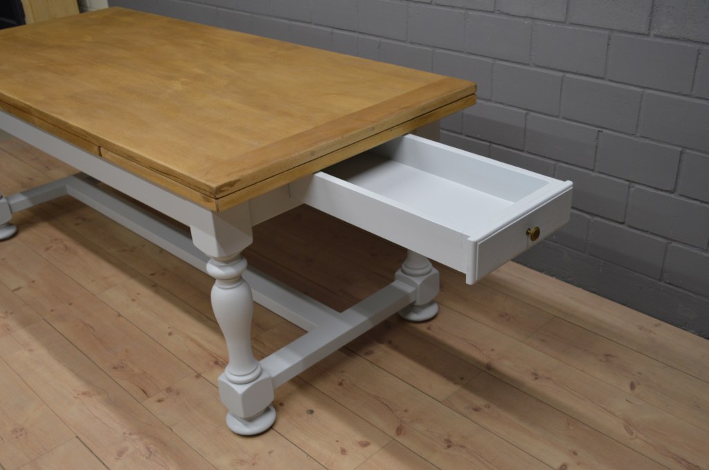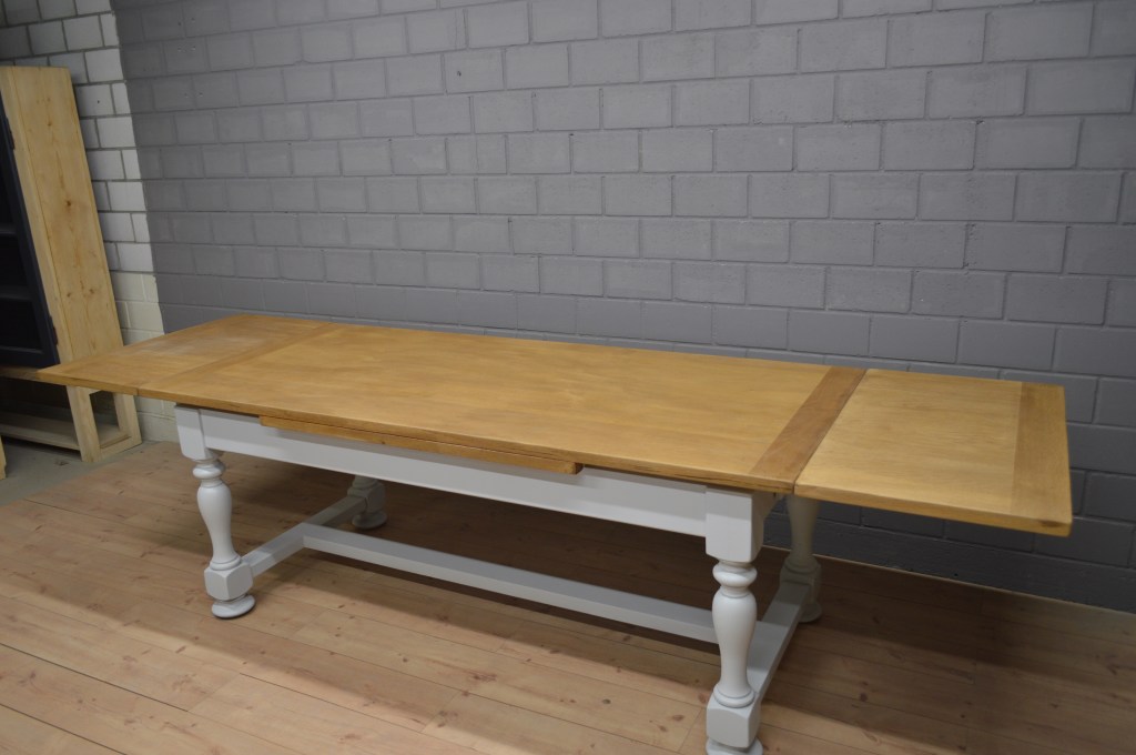 Table à manger avec rallonges bicolore gris – bois naturel